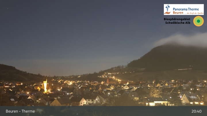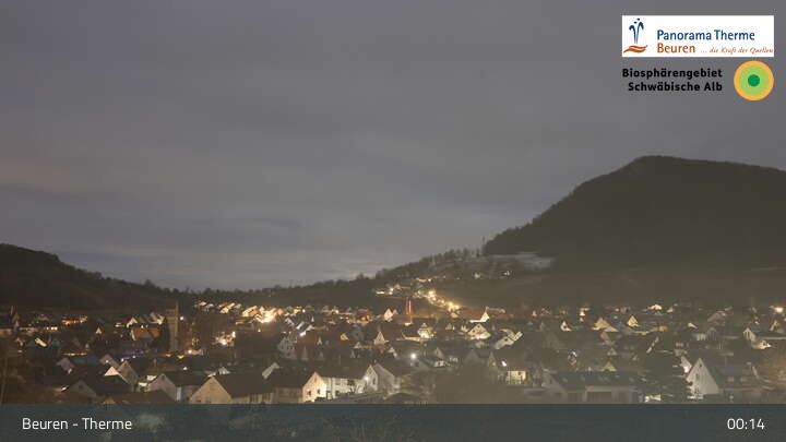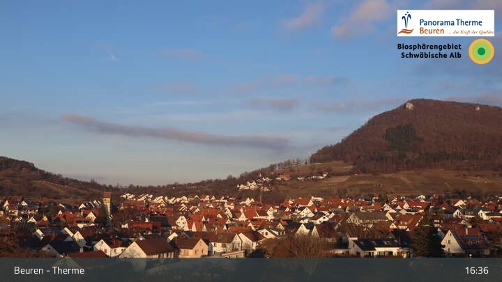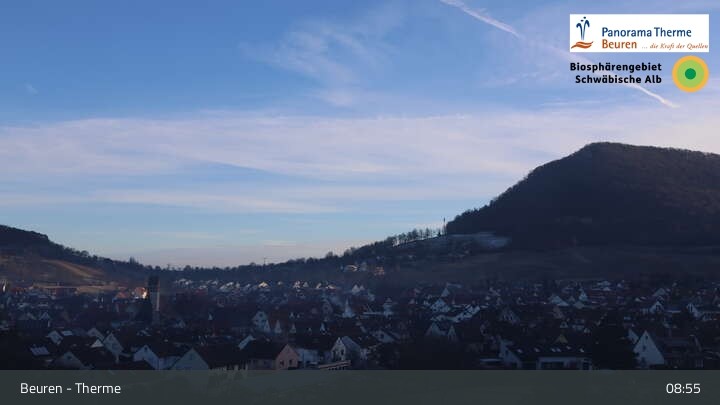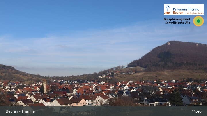 Blick über Beuren in der Schwäbischen Alb. Die Webcam befindet sich in der Panorama Therme Beuren.