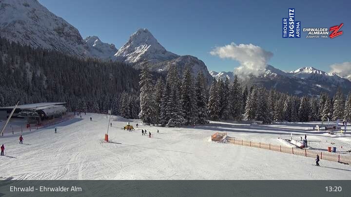 Webcam Sicht auf das Kinderland an der Ehrwalder Alm, 1,491 m