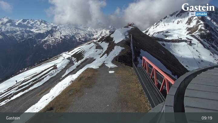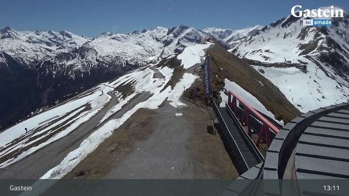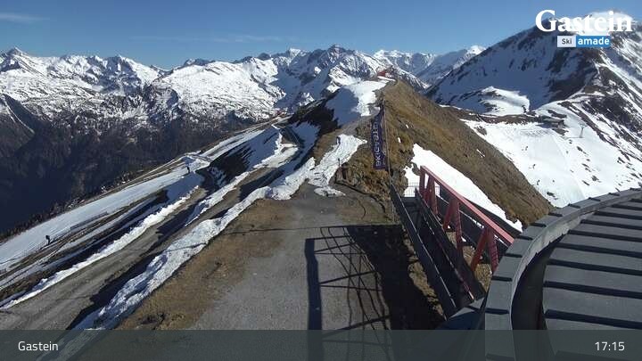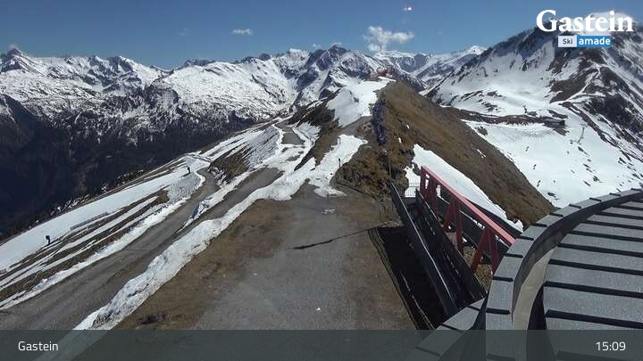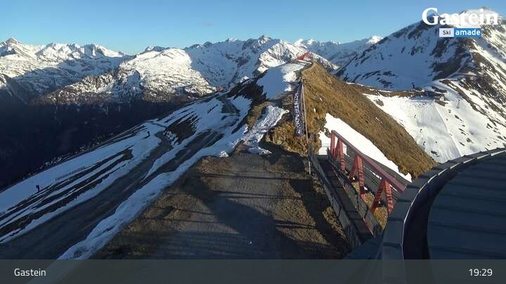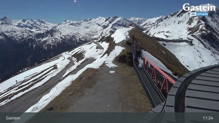 Die Webcam blickt von der Südseite der Bergstation am Stubnerkogel auf die umliegende Bergwelt von Bad Gastein.