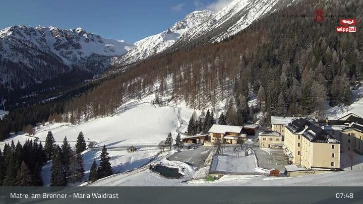 Die Webcam zeigt live einen Eindruck vom bekannten Wallfahrtsort Maria Waldrast am Brenner. Dort befindet sich auch eine Klostergaststätte zur Einkehr.