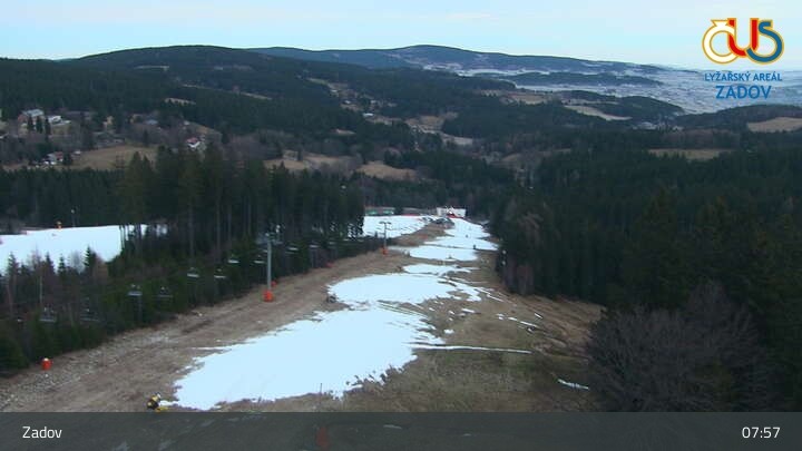 Hier blickst du auf das Wintersportgebiet Zadov-Churanov. Es befindet sich in Tschechien an der Grenze zum Nationalpark Böhmerwald.