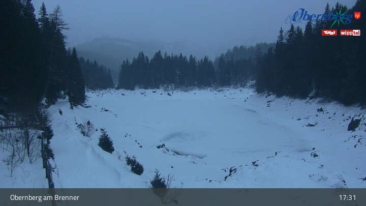 Die Kamera blickt auf den Obernberger See am Brenner.