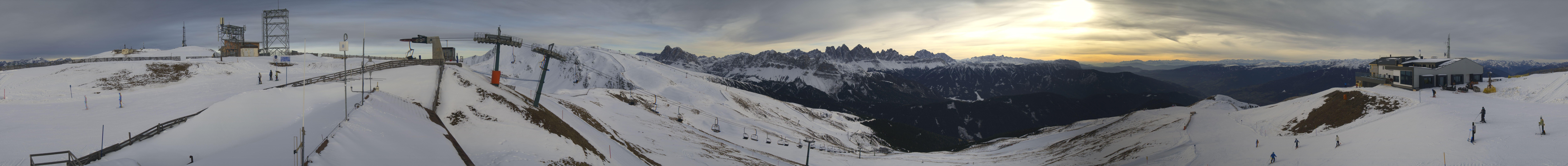 Hier siehst du den Lift Rifugio Cai in Plose Brixen, die Plosenhütte Rifugio Plose und den Dolomiten Höhenweg 2.