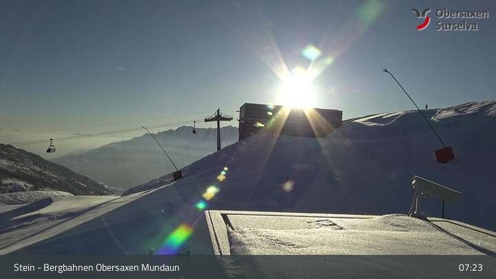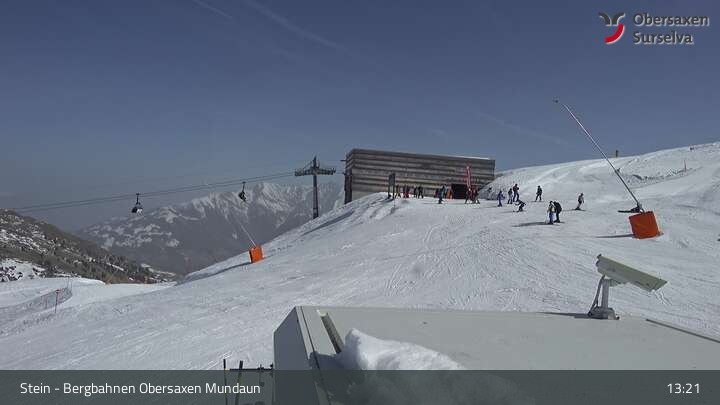 Die Webcam zeigt die Bergstation des Misanenga - Untermatt Lifts in Obersaxen in Graubünden. Die umliegende Alpenwelt ist ideal für Wanderungen und Mountainbiken geeignet.