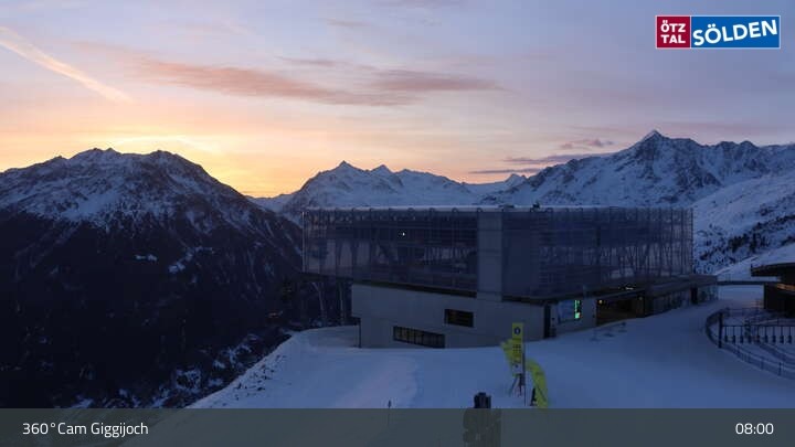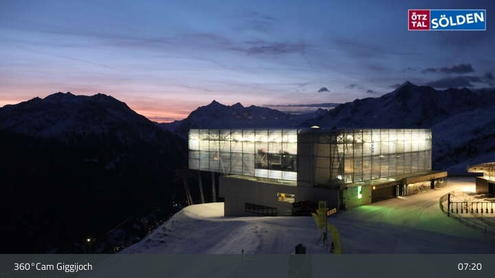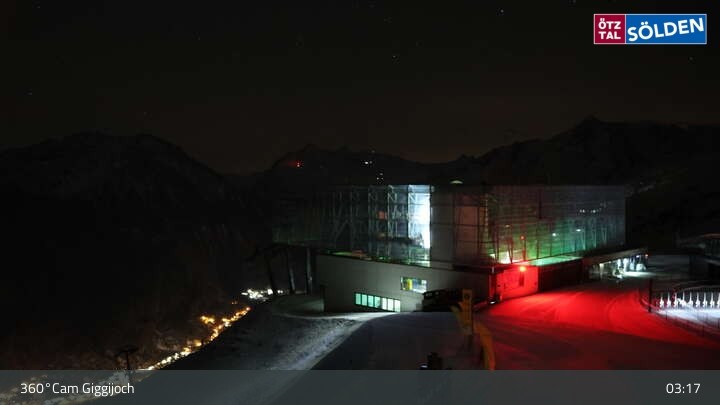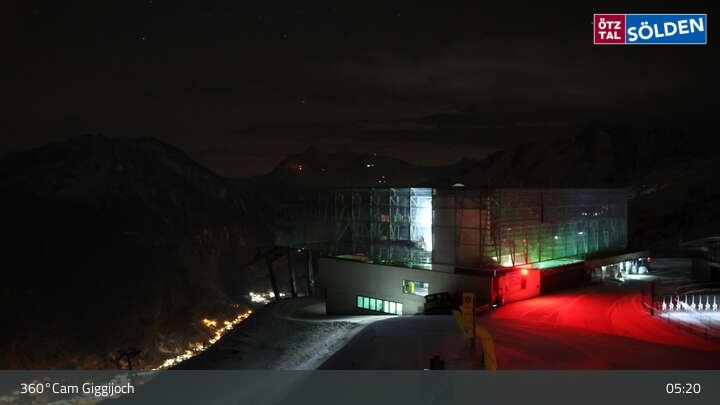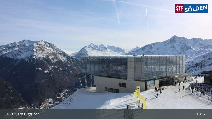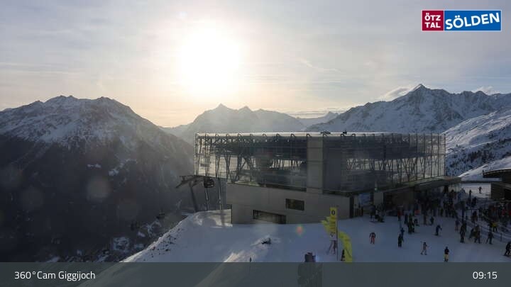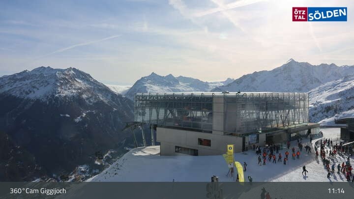 Blick vom Giggijoch auf die Bergbahnen sowie die umliegendeAlpenwelt von Sölden.