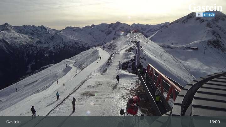 Die Webcam blickt von der Südseite der Bergstation am Stubnerkogel auf die umliegende Bergwelt von Bad Gastein.