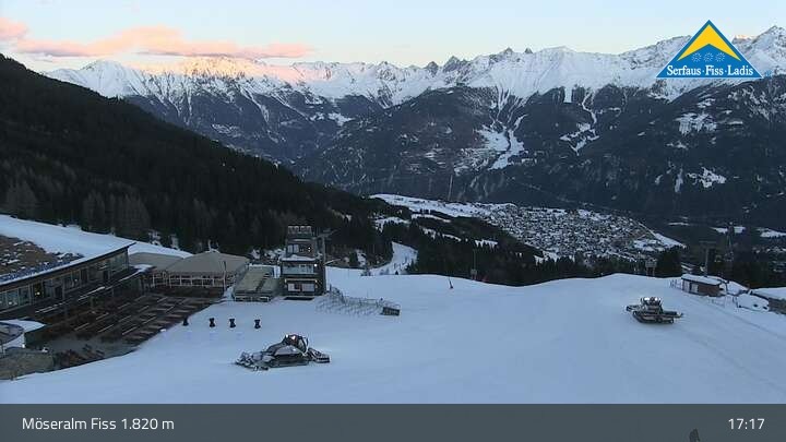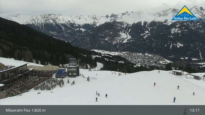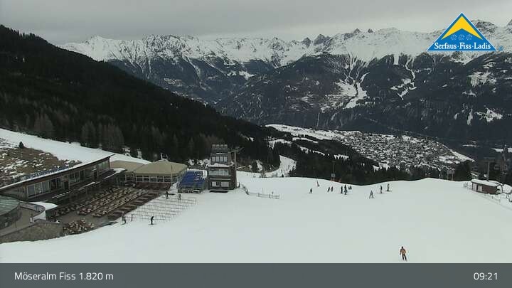 Genieße die Aussicht vom Bergrestaurant Möseralm, das sich oberhalb von Fiss befindet. Dort findest du auch einen großen Sommer Funpark.