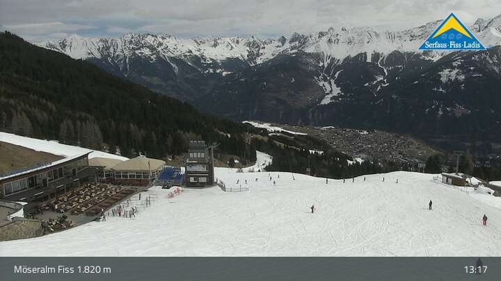 Genieße die Aussicht vom Bergrestaurant Möseralm, das sich oberhalb von Fiss befindet. Dort findest du auch einen großen Sommer Funpark.