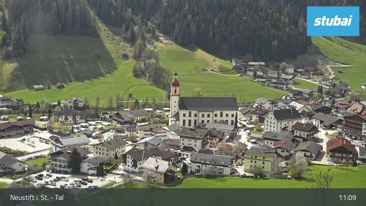 Die Webcam blickt auf den kleinen Ort Neustift im Stubaital.
