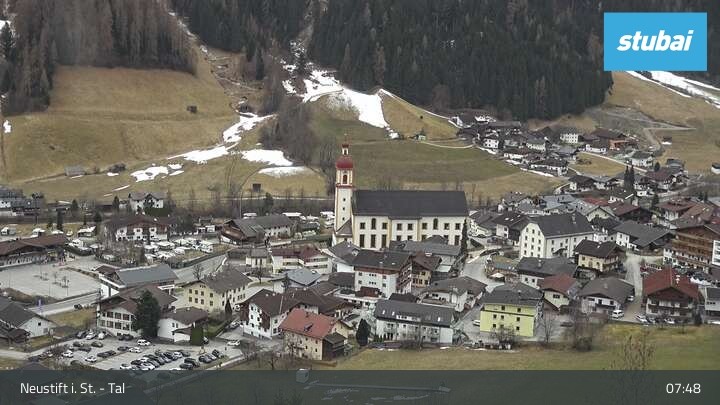 Die Webcam blickt auf den kleinen Ort Neustift im Stubaital.