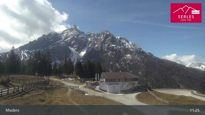 Die Webcam eröffnet den Blick von der Bergstation Koppeneck auf den Hausberg von Mieders, die Serles. Zu sehen sind außerdem das Bergrestaurant Koppeneck mit Kinderspielplatz und der Speichersee.