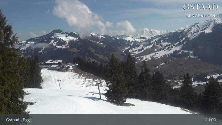 Webcam Gstaad - Blick zum Eggli Bergrestaurant, 1,589 m