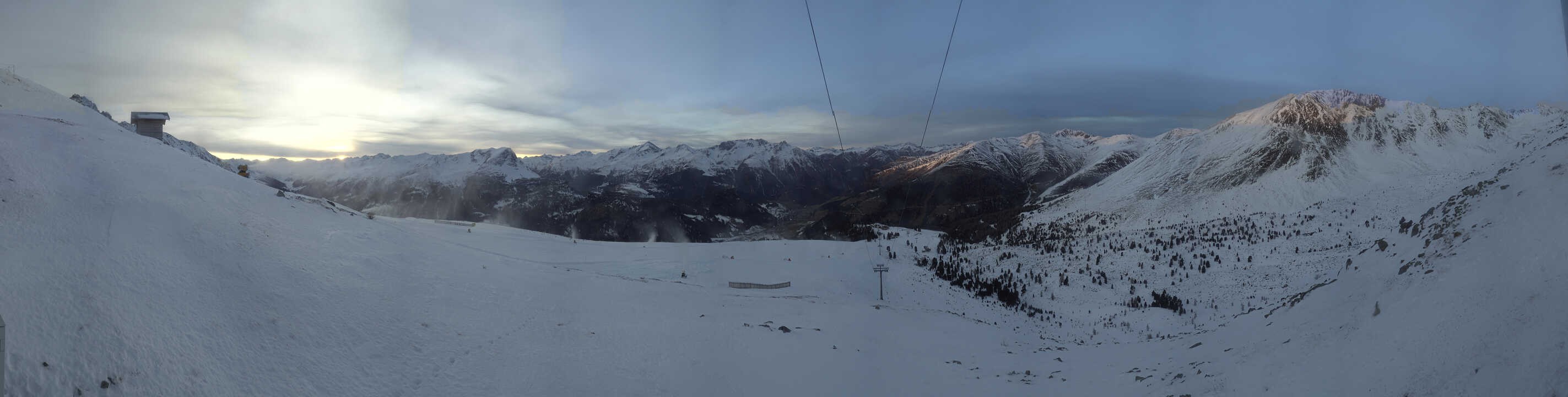Die Webcam zeigt die Bergstation der Zirmbahn mit Blick Richtung Nauders am Reschenpass.