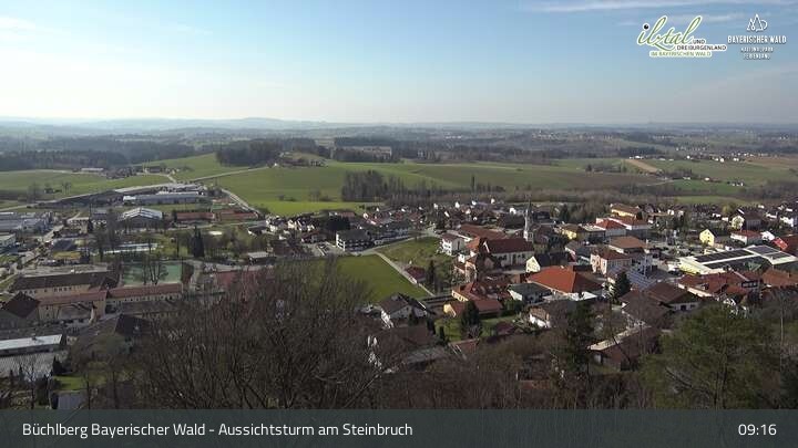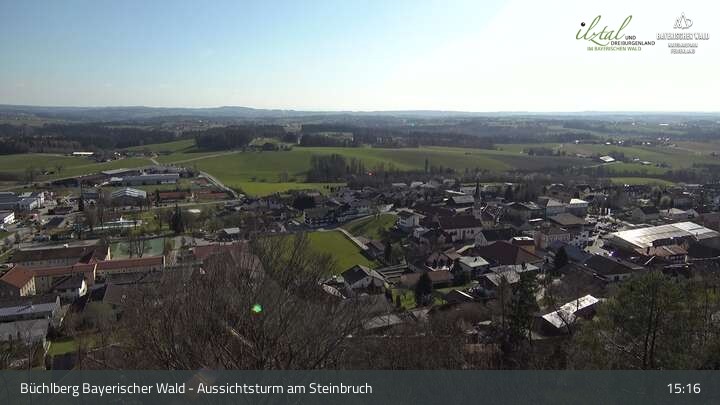 Webcam Büchlberg und Steinbruchsee vom Aussichtsturm, 527 m