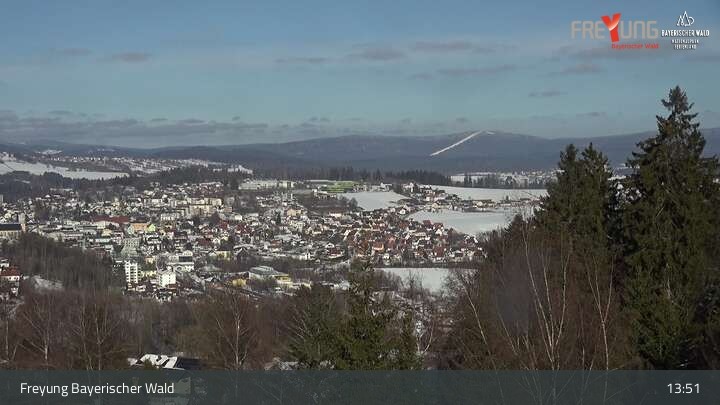 Diese Webcam eröffnet dir einen tollen Ausblick über die Stadt Freyung im Bayerischen Wald. Im Hintergrund ist Kreuzberg zu sehen.
