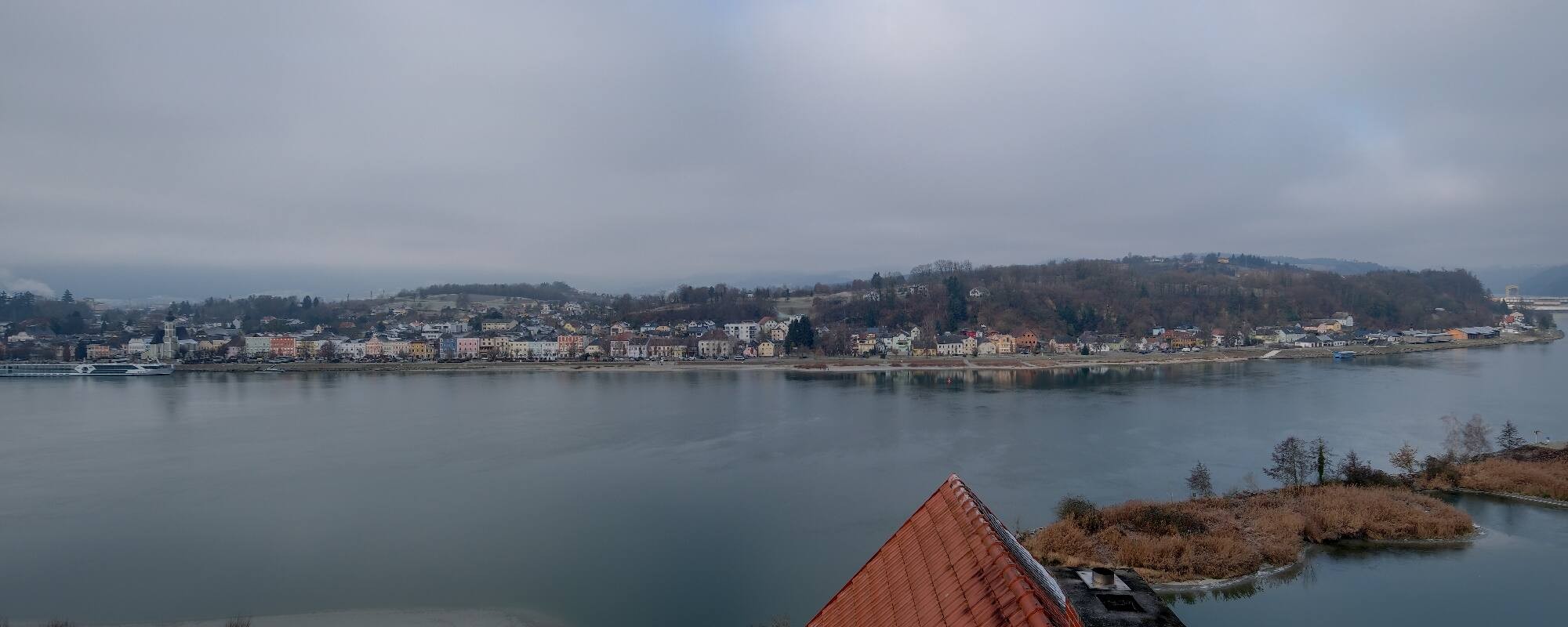 Die Webcam blickt vom Hotel-Restaurant Faustschlössl bei Feldkirchen über die Donau nach Aschach.