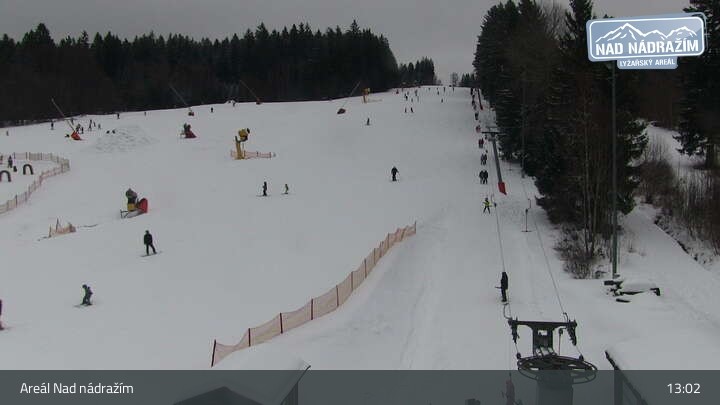 Die Webcam zeigt die Skilifte im Areal Nad nádražím bei Železná Ruda nahe der deutschen Grenze.