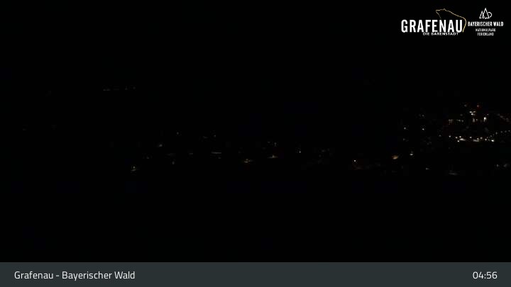 Genieße den Ausblick auf den Luftkurort Grafenau im Bayerischen Wald. Die Kamera befindet sich südlich der Stadt und blickt nach Norden über die Stadt zum Nationalpark Bayerischer Wald.