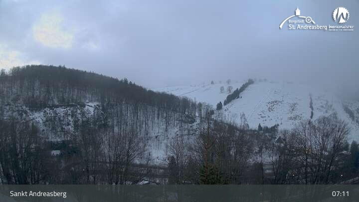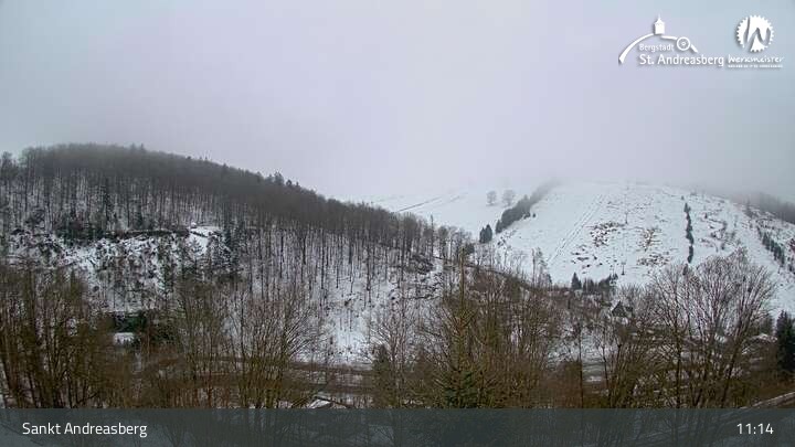 Die Kamera blickt vom Harz-BnB Werkmeister in Sankt Andreasberg nach Süden auf die Alberti-Lifte am Matthias-Schmidt-Berg. Im Winter sind die Lifte für Skifahrer in Betrieb, im Sommer wartet hier eine Sommerrodelbahn sowie ein Mountainbike- und Downhill-Erlebnispark.