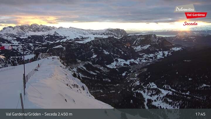 Von der Seceda eröffnet sich der Blick nach Süden zur Sellagruppe und dem Langkofel