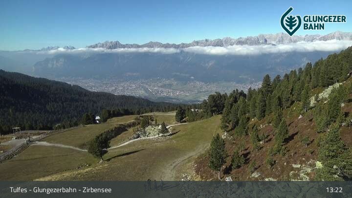 Die Webcam ermöglicht einen tollen Panoramablick auf die Landschaft am Glungezer. Das Bild wird unweit des Zirbensees aufgenommen.