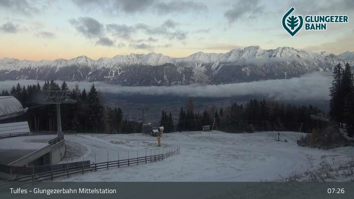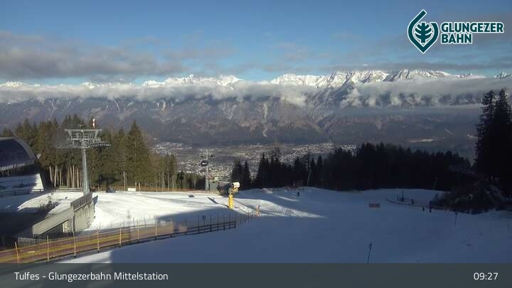 Die Webcam ist an der Mittelstation des Glungezer positioniert und zeigt einen tollen Panoramablick auf das Ski- und Wandergebiet in Tulfes.
