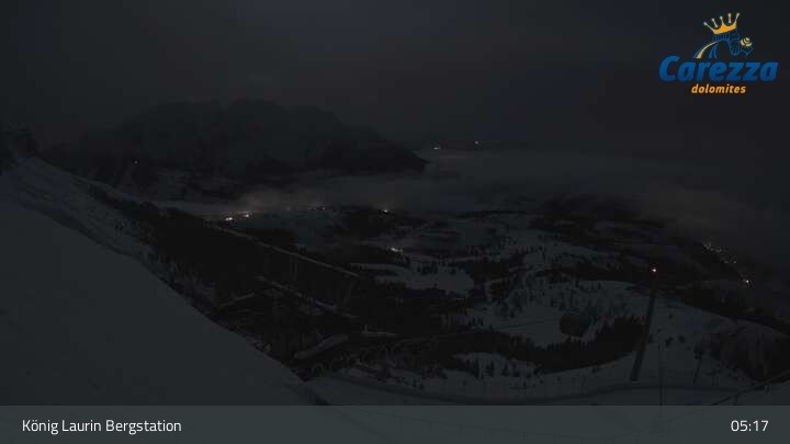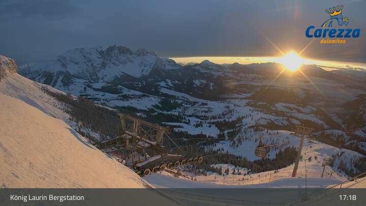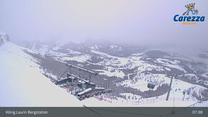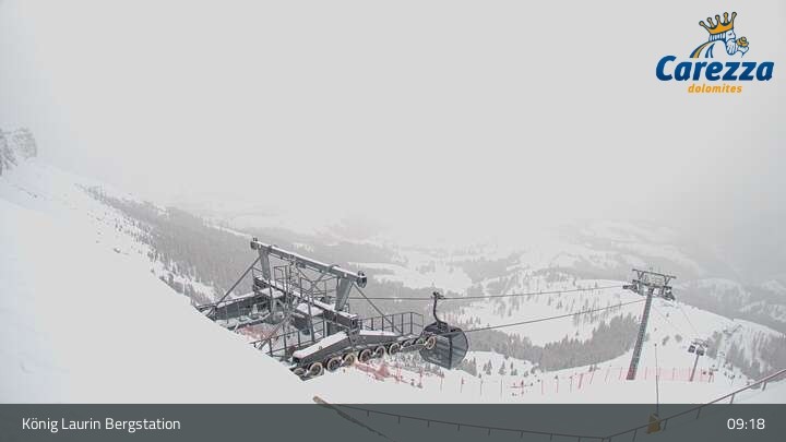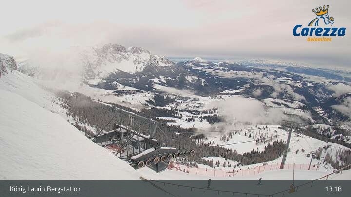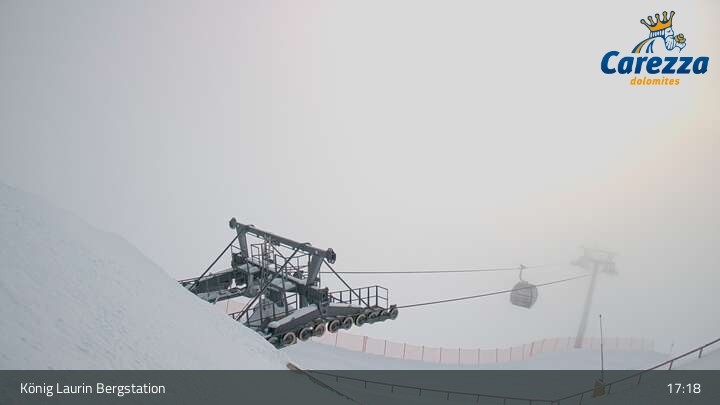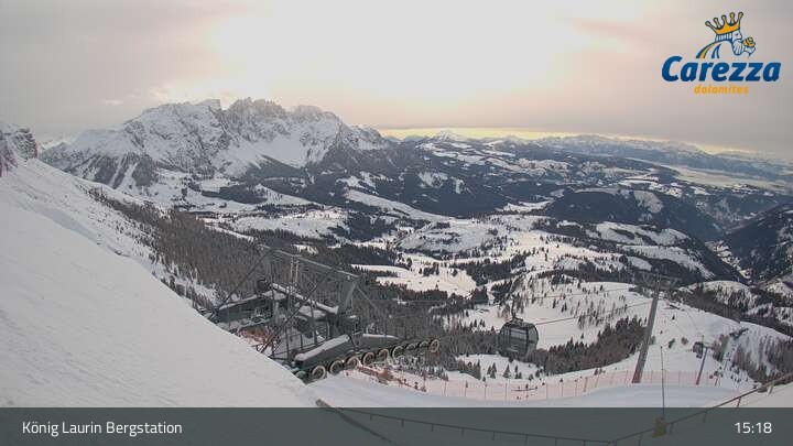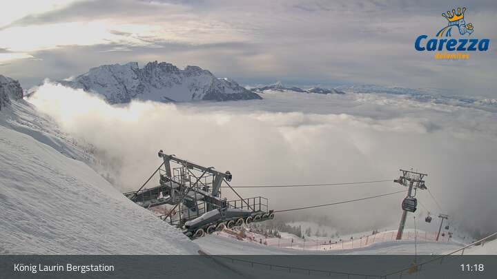 Die Webcam eröffnet von der Kölner Hütte das Panorama zum Latemar. Du siehst hier auch gut die neue König Laurin Gondelbahn mit unterirdischer Bergstation.