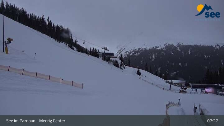 Die Webcam in See eröffnet den Blick vom Medrig Center auf rund 1.800 Metern auf die Bergstation der Medrigjoch-Gondelbahn.