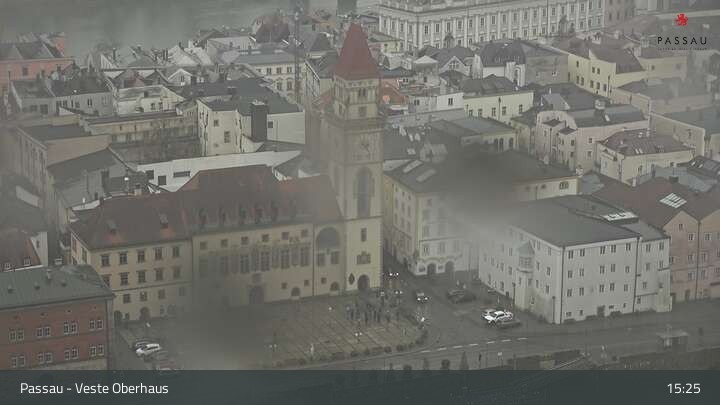 Die Webcam zeigt einen tollen Panoramablick von der Veste Oberhaus auf die Donau und die Altstadt von Passau. Neber der herrschaftlichen Burgfassade sieht man sehr gut die Landzunge zwischen Donau und Inn, auf der die Altstadt mit ihren denkmalgeschützten Häusern liegt. Gut zu erkennen sind unter anderem die Ortspitze am Zusammenfluss der drei Flüsse, das an der Donau liegende Rathaus, der weiße Dom St. Stephan und das erhöhte Kloster Mariahilf in der Innstadt.