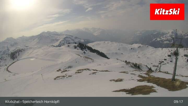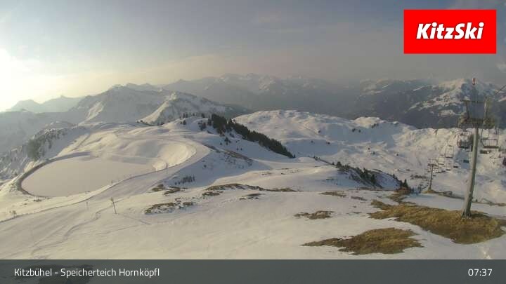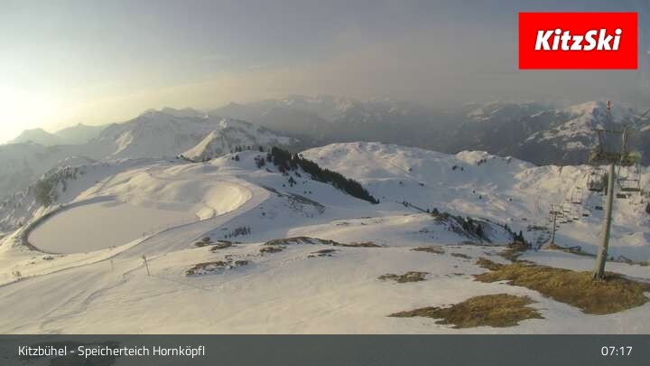 Die Webcam befindet sich auf rund 1.700 m Höhe und blickt auf den Speicherteich Hornköpfl sowie die Kitzbüheler Alpenwelt.