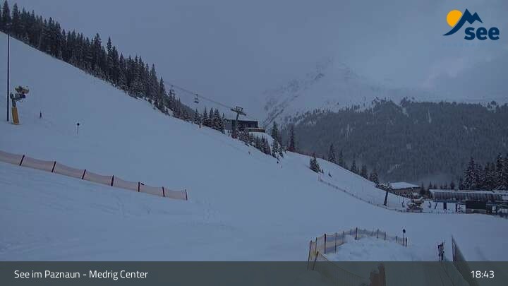 Die Webcam in See eröffnet den Blick vom Medrig Center auf rund 1.800 Metern auf die Bergstation der Medrigjoch-Gondelbahn.