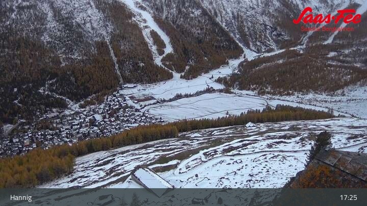 Die Webcam eröffnet einen schönen Ausblick von der Bergstation Hannig über Saas-Fee im Schweizer Kanton Wallis.