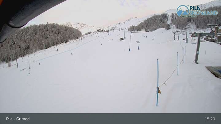 Die Webcam blickt auf den Sessellift Grimond in Pila.