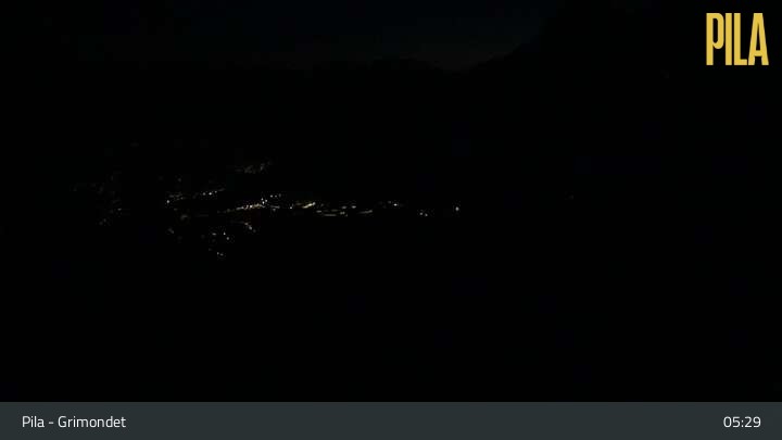 Diese Webcam an der Bergstation des Sessellifts Grimondet blickt auf die umliegende Bergwelt von Pila im Aostatal.
