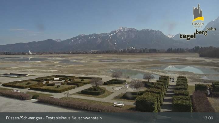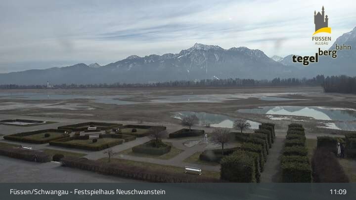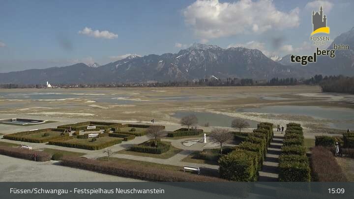 Die Webcam blickt auf den Garten von Ludwigs Festspielhaus in Füssen am Forggensee.