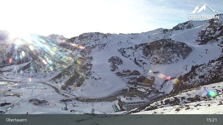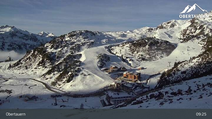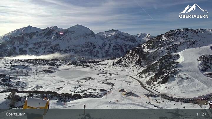 Blick auf die Pisten in Obertauern aus Sicht des Panorama Hotels