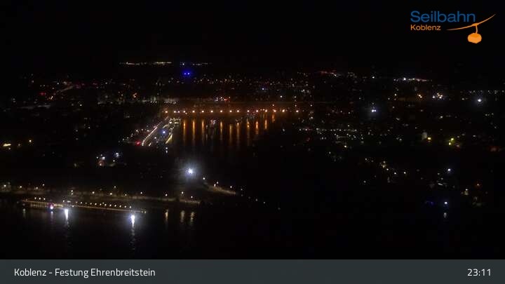 Webcam Koblenz: Blick von der Festung auf Seilbahn und Deutsches Eck, 160 m