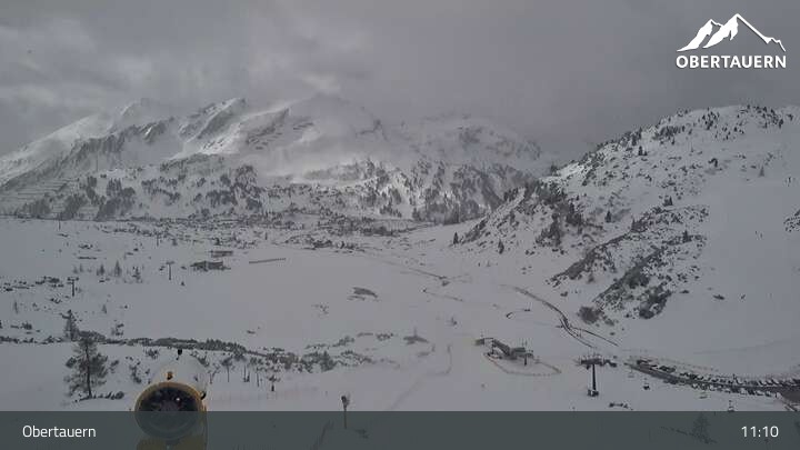 Blick auf die Pisten in Obertauern aus Sicht des Panorama Hotels
