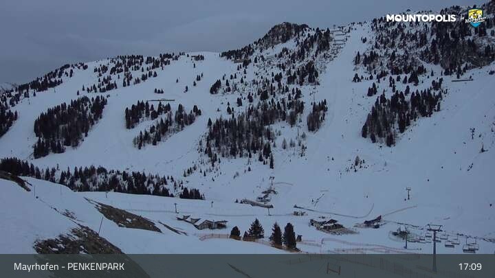 Hier blickst du auf den Vans Penken Park sowie den Sun-Jet Lift im Skigebiet Mayrhofen.