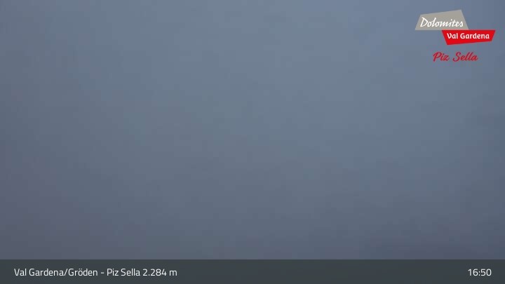 Ausblick von der Bergstation am Piz Sella in Val Gardena in Südirol. Zu sehen sind u.a. der Langkofel und die Sellagrupee.