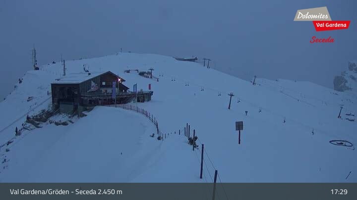 Von der Seceda eröffnet sich der Blick nach Süden zur Sellagruppe und dem Langkofel