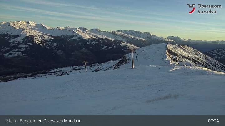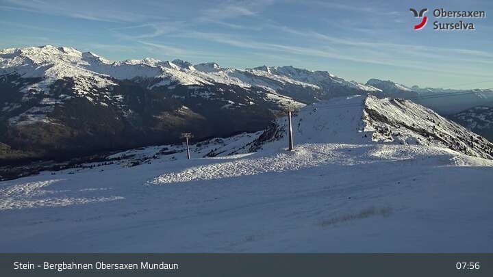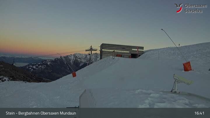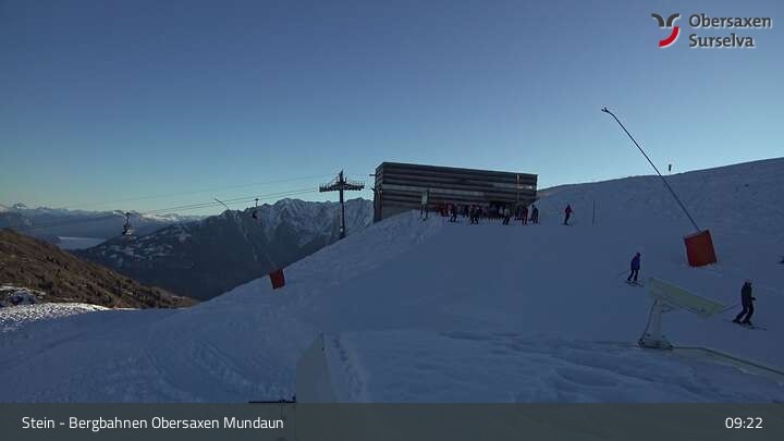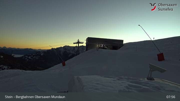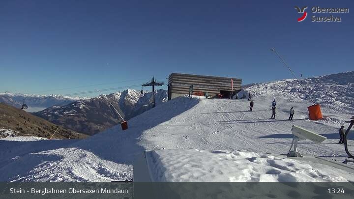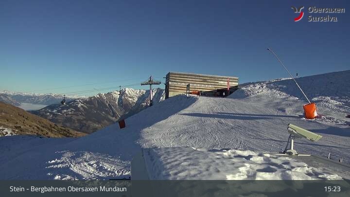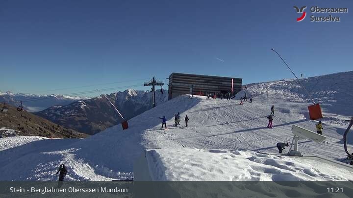 Die Webcam zeigt die Bergstation des Misanenga - Untermatt Lifts in Obersaxen in Graubünden. Die umliegende Alpenwelt ist ideal für Wanderungen und Mountainbiken geeignet.