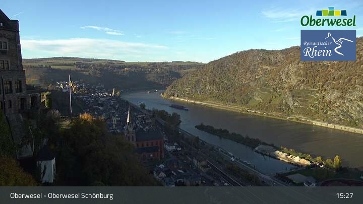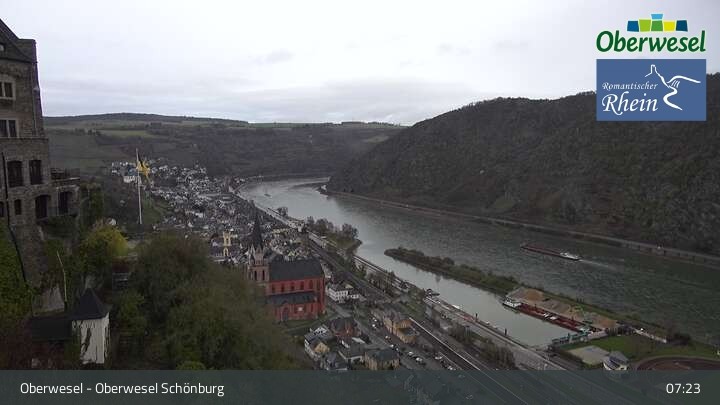 Die Webcam blickt über die Schönburg im rheinland-pfälzischen Oberwesel auf den Rhein. Die Höhenburg stammt aus dem 12. Jahrhundert.