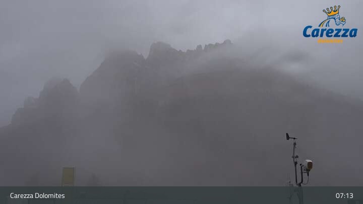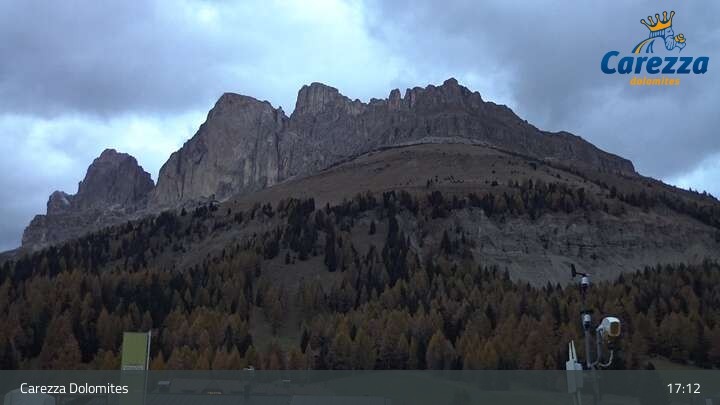 Hier siehst du die Talstation des Sessellifts Pra di Tori sowie die Berge von Carezza