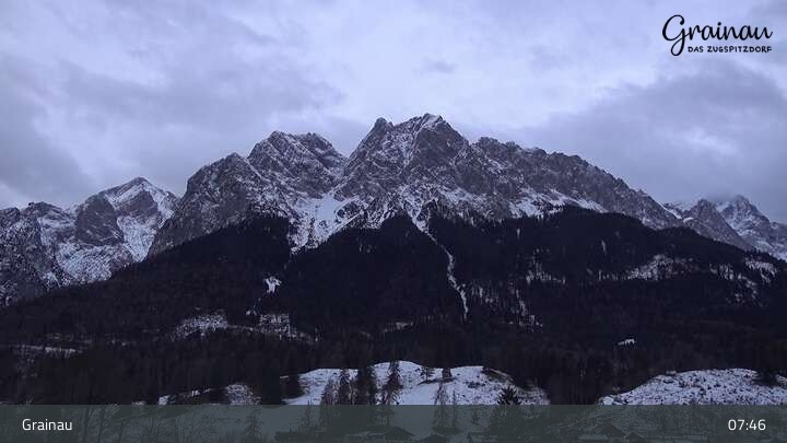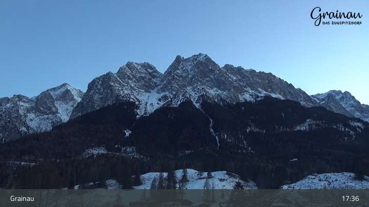 Die Live-Webcam zeigt vom Freibad aus einen Rundumblick auf das Bergdorf Grainau und seine Umgebung. Zu sehen sind unter anderem die Zugspitze, der große und kleine Waxenstein sowie der Hohe Ziegspitz.