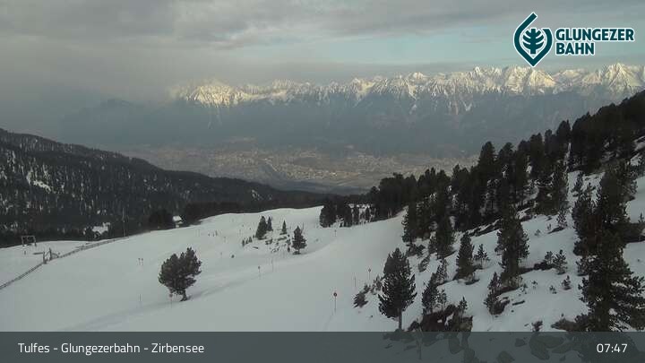 Die Webcam ermöglicht einen tollen Panoramablick auf die Landschaft am Glungezer. Das Bild wird unweit des Zirbensees aufgenommen.