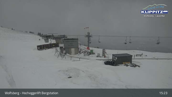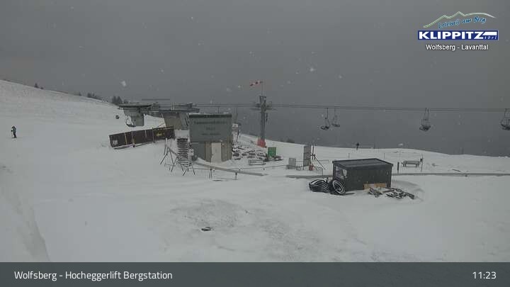 Hier siehst du den Ausblick von der Bergstation Klippitztörl über den Sessellift und die angrenzenden Pisten.