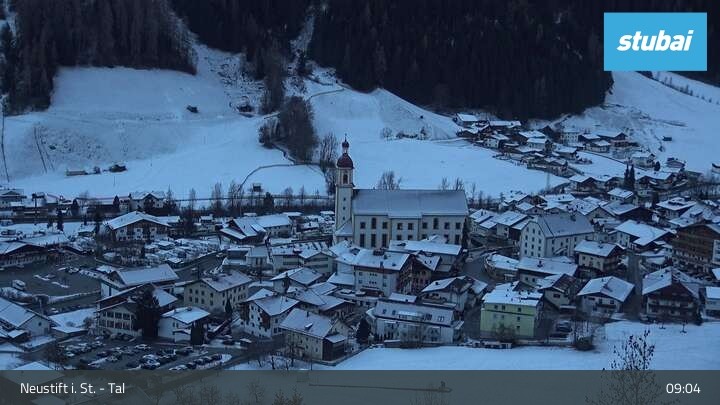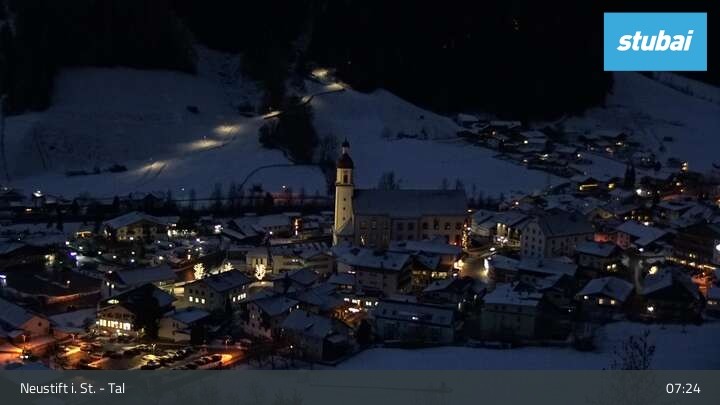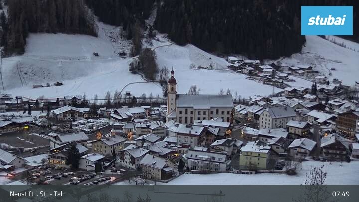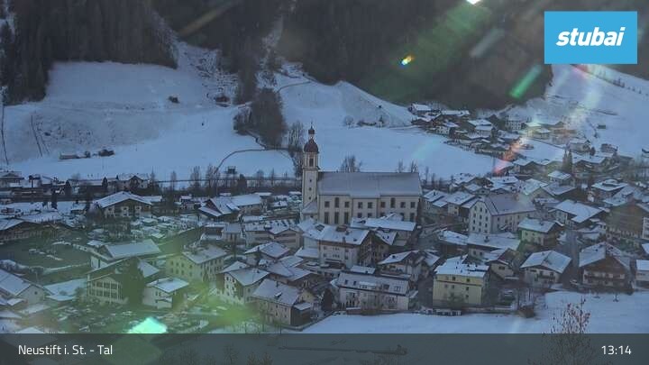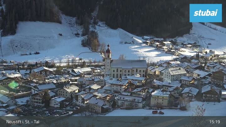 Die Webcam blickt auf den kleinen Ort Neustift im Stubaital.