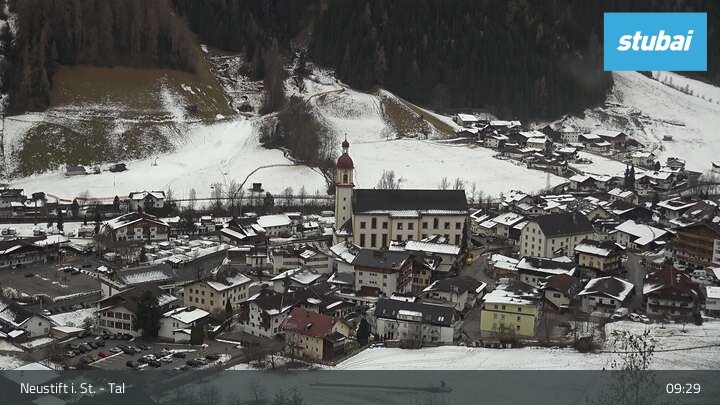 Die Webcam blickt auf den kleinen Ort Neustift im Stubaital.