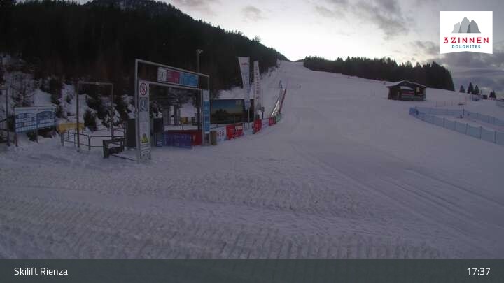 Hier siehst du im Winter aktuelle Aufnahmen aus dem Skigebiet Rienz, das sich südlich von Toblach im Hochpustertal befindet.